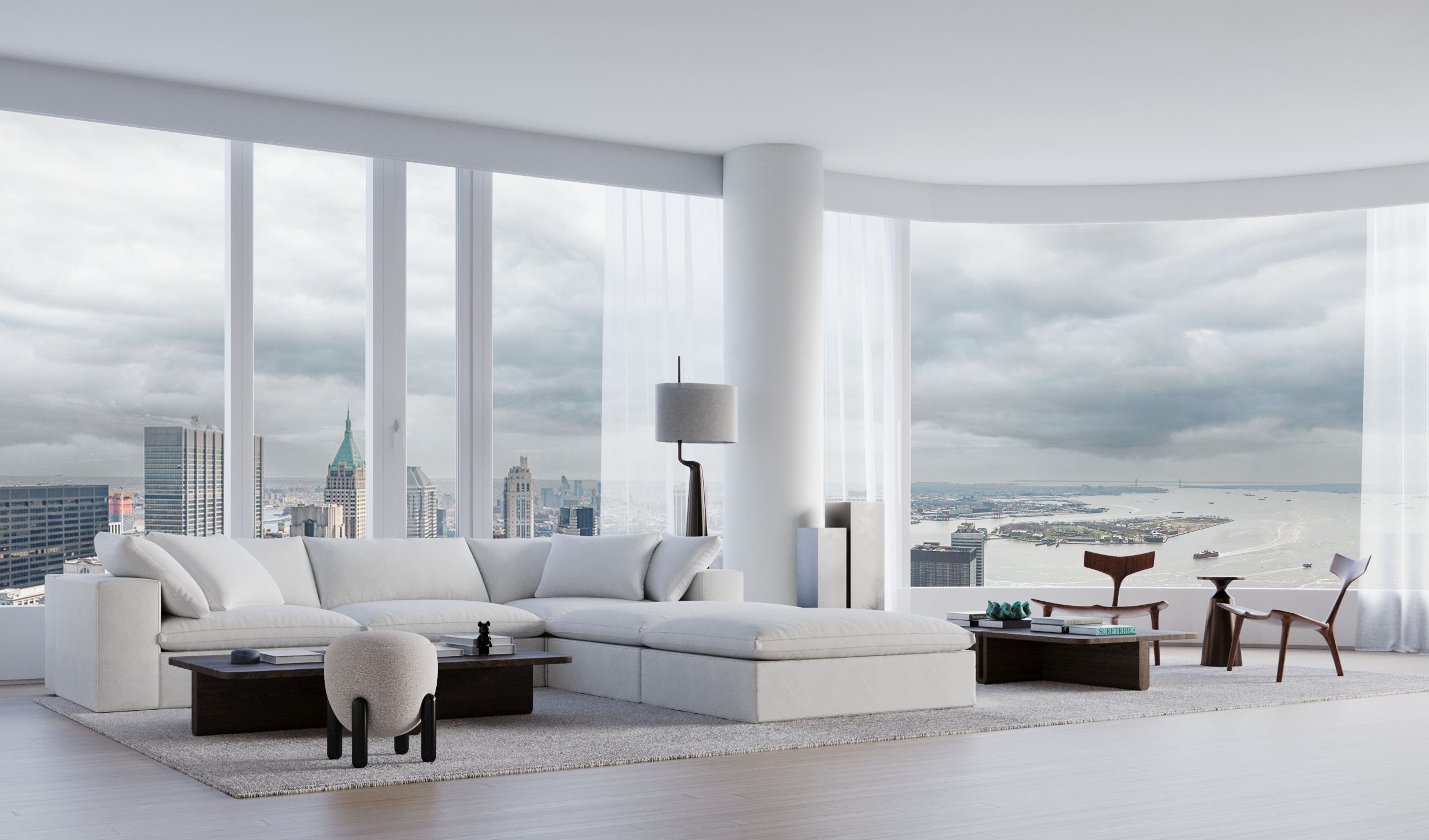 Welcome to '50 W,' where modern elegance and timeless luxury converge on the 53rd floor, offering a breathtaking panorama of downtown New York, the Statue of Liberty, and the iconic One World Trade Center. The design approach embraces a refined neutral palette, creating a canvas that celebrates the city's skyline. Here, minimalistic color finds its place with precision, elevating key accents in a display of smart sophistication. The interiors breathe with a curated mix of textures, seamlessly blending bespoke furniture and exquisite artwork, evoking a sense of opulence that resonates with the dynamic energy of this world-class city. At '50 W,' I've crafted a living space that embodies the essence of New York's cosmopolitan spirit, where every detail speaks of elegance, luxury, and a contemporary urban lifestyle.